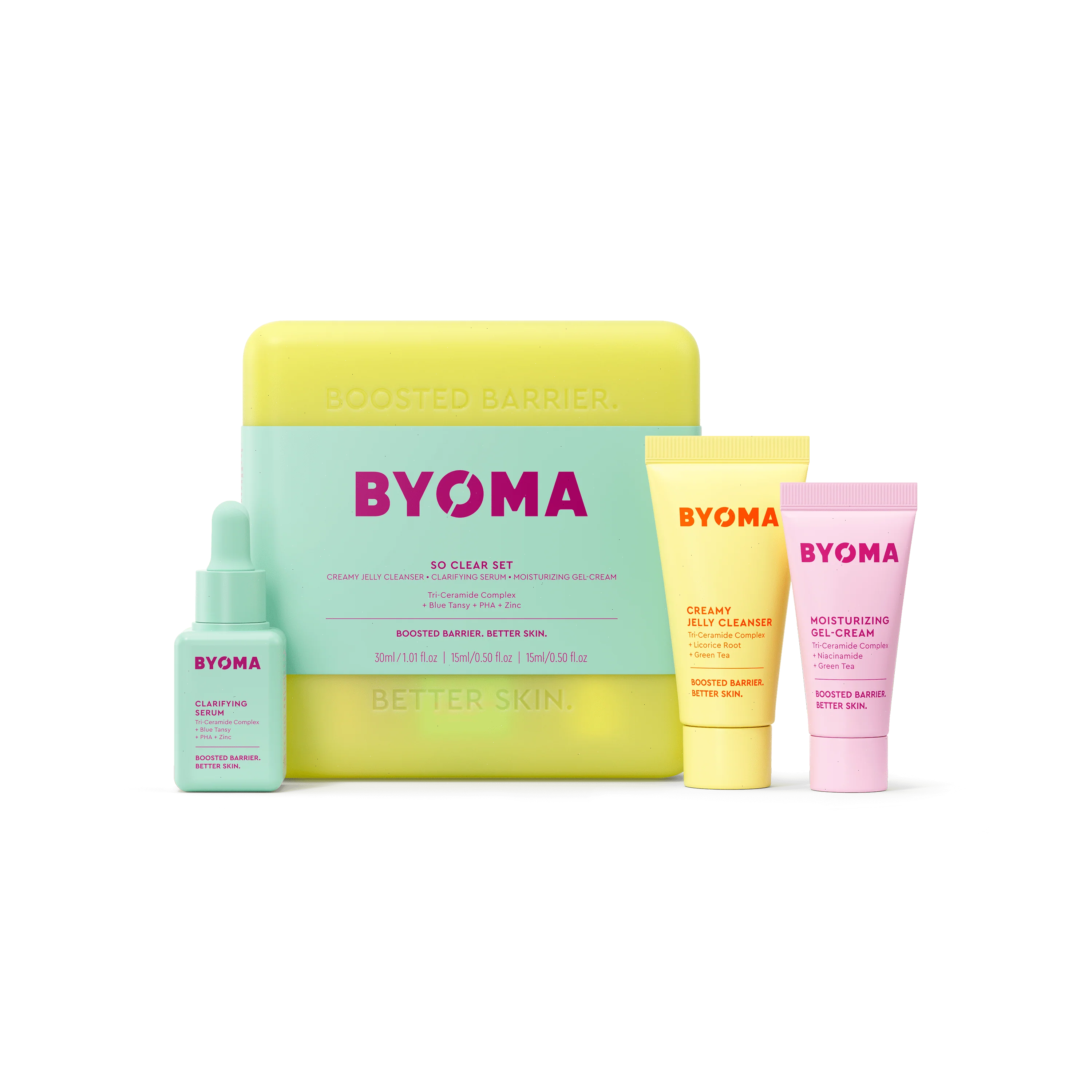 Our daily Creamy Jelly Cleanser is super hydrating and pH-balanced with antioxidant-rich LICORICE ROOT and GREEN TEA to hydrate and brighten, leaving skin refreshed, clean and makeup-free. Our Clarifying Serum with BLUE TANSY, PHA and ZINC targets blemishes and helps unclog pores for a calmer, clearer complexion. The deeply hydrating, lightweight Moisturising Gel Cream with NIACINAMIDE and GREEN TEA helps brighten skin and reduce redness while supporting skin barrier function for healthy, hydrated skin.
